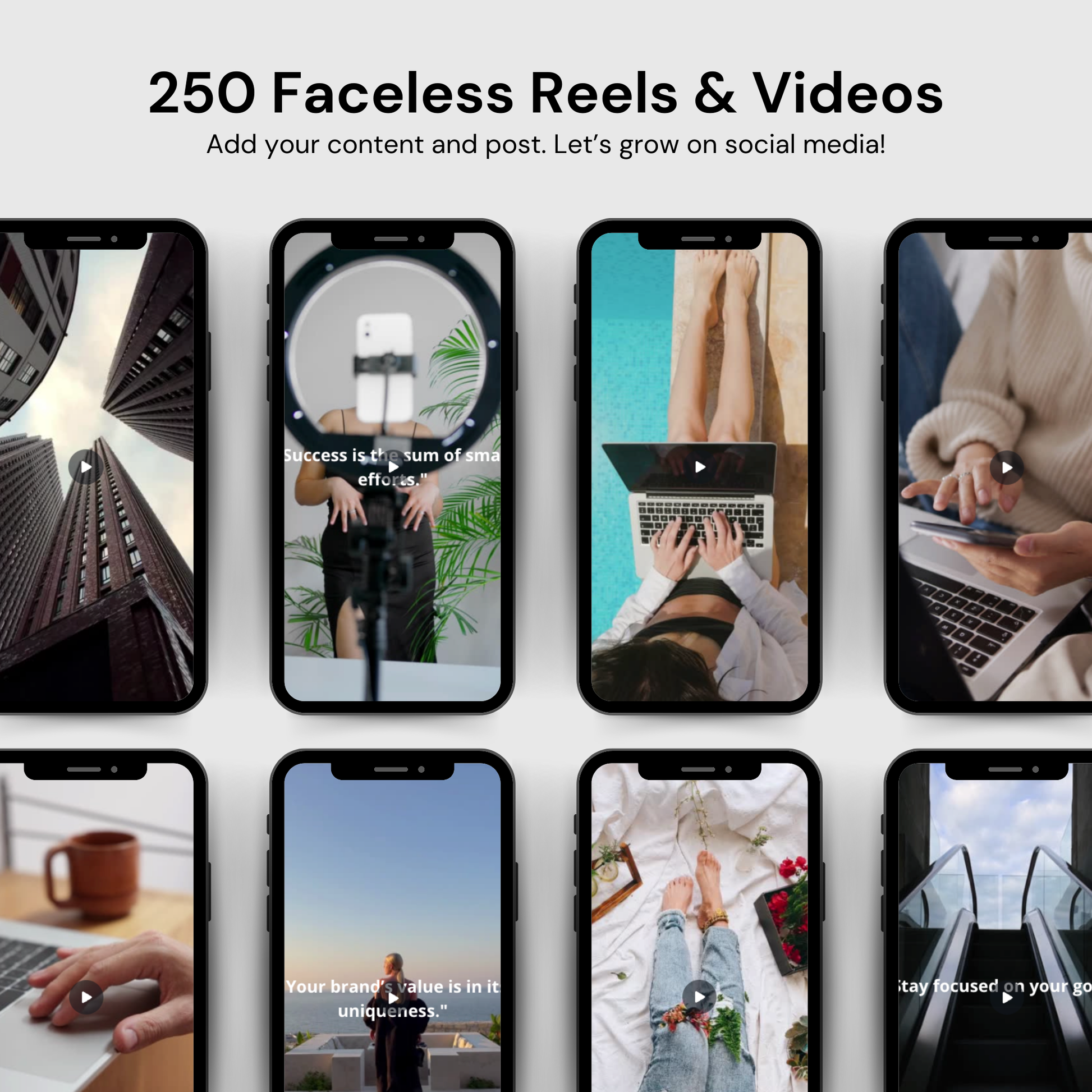 6️⃣ 250 Faceless Reels & Videos – High-quality, ready-to-use videos for viral content.