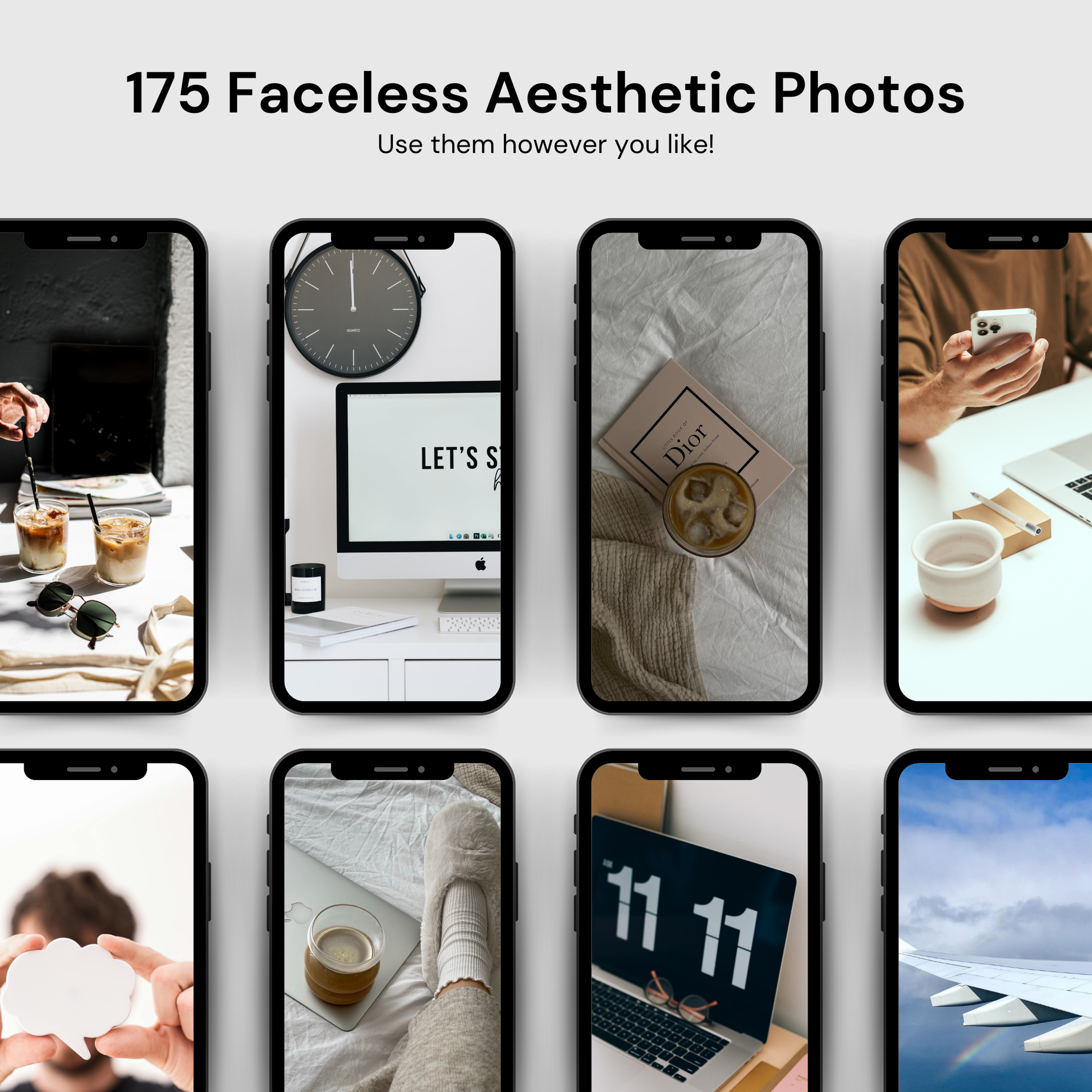 7️⃣ 175 Faceless Aesthetic Photos – Perfect for social media, websites, and digital products.